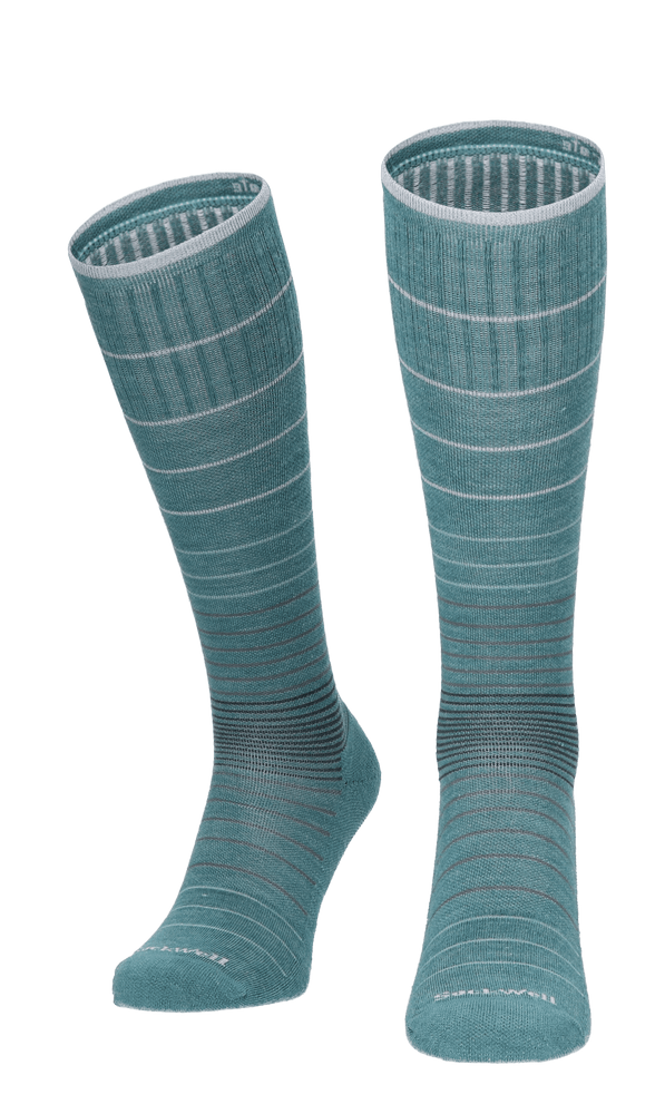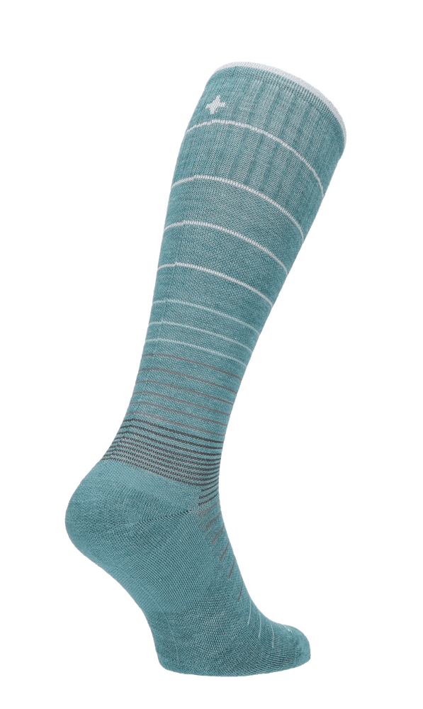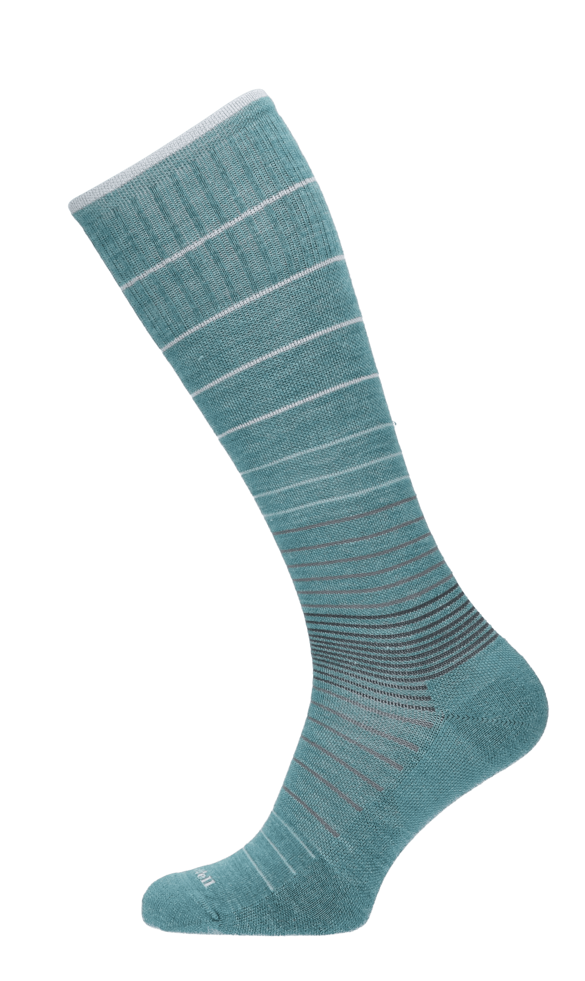 Der Sockwell Circulator ist ein modischer Kompressionsstrumpf für Damen. Die Socken bieten eine leichte Kompression von 15-20 mmHg. Damit sind es Kompressionsstrümpfe für Lifestyle und Sport und bieten unterstützenden Komfort bei längerem Stehen oder Sitzen, Sport, Reisen und mehr. Sie werden oft von Menschen verwendet, die unter müden oder schweren Beinen oder Flüssigkeitsansammlung in den Füßen und Beinen leiden. Sie sind auch während der Schwangerschaft angenehm zu tragen. Der natürliche Materialmix aus Merinowolle und Bambusgarn sorgt für eine gute Feuchtigkeitsaufnahme und Temperaturregulierung.