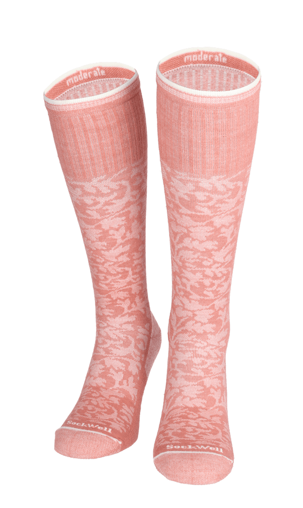 Der Sockwell Damask ist ein modischer Kompressionsstrumpf für Damen. Die Socken bieten eine leichte Kompression von 15-20 mmHg. Damit sind es Kompressionsstrümpfe für Lifestyle und Sport und bieten unterstützenden Komfort bei längerem Stehen oder Sitzen, Sport, Reisen und mehr. Sie werden oft von Menschen verwendet, die unter müden oder schweren Beinen oder Flüssigkeitsansammlung in den Füßen und Beinen leiden. Sie sind auch während der Schwangerschaft angenehm zu tragen. Der natürliche Materialmix aus Merinowolle und Bambusgarn sorgt für eine gute Feuchtigkeitsaufnahme und Temperaturregulierung.