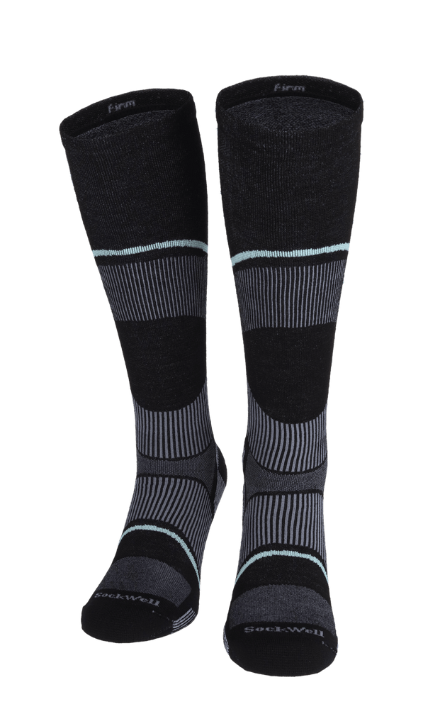 Diese Sockwell Stabilizer Knee High sind hohe Sportsocken für Damen. Sie bieten eine festere Kompression von 20-30 mmHg. Die Sport-Kompressionsstrümpfe bieten damit unterstützenden Komfort beim Laufen, Fitness, Golf, Radfahren, Tennis und allen anderen Sportarten, bei denen Sie Kompressionsstrümpfe sinnvoll sind. Sie werden getragen, um Ihre Beine während des Trainings zu unterstützen und werden nach dem Sport häufig verwendet, um das Risiko von Muskelschmerzen zu verringern. Die verwendeten Materialien aus Merinowolle und Bambus tragen aufgrund der guten feuchtigkeitsabsorbierenden und temperaturregulierenden Eigenschaften zu extra Komfort bei.